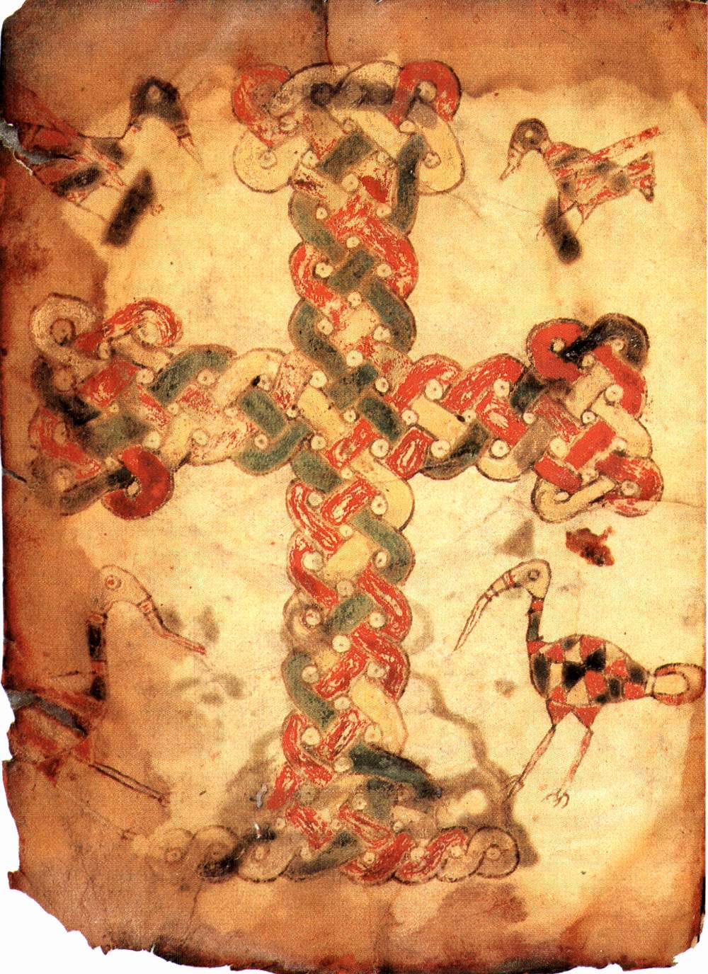 Otto Pächt: "In der romanische Epoche feiert die barbarische Idee der Formverschlingung nach mehrhundertjähriger Pause plötzlich ihre Auferstehung, in der Monumentalskulptur, wie in der Buchmalerei ... Alle Künste der Formverschränkung verbinden sich mit denen der Formmetamorphose" (S. 60)