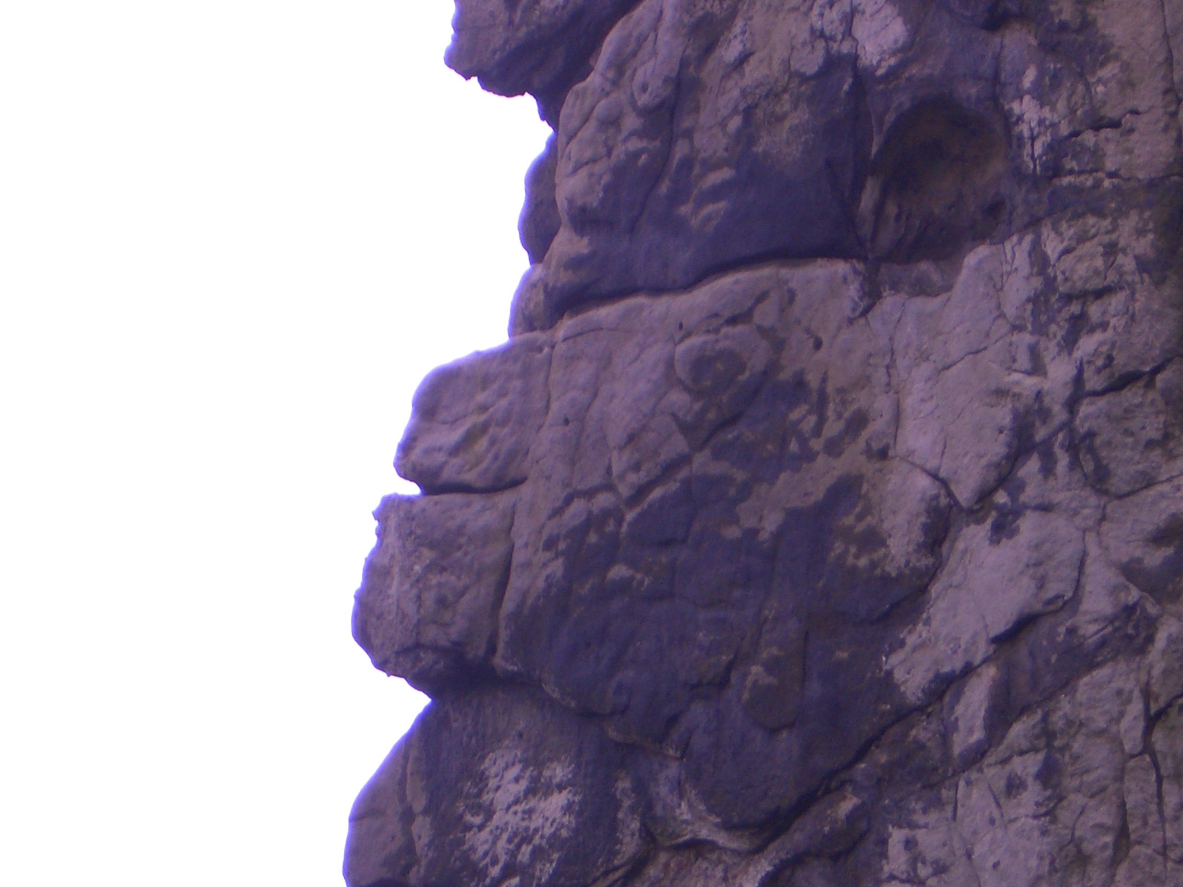 Eine Reihe grotesker menschenähnlicher Gesichter, die überwiegend an der nordwestlichen "Wasserkante" übereinander angeordnet sind.
