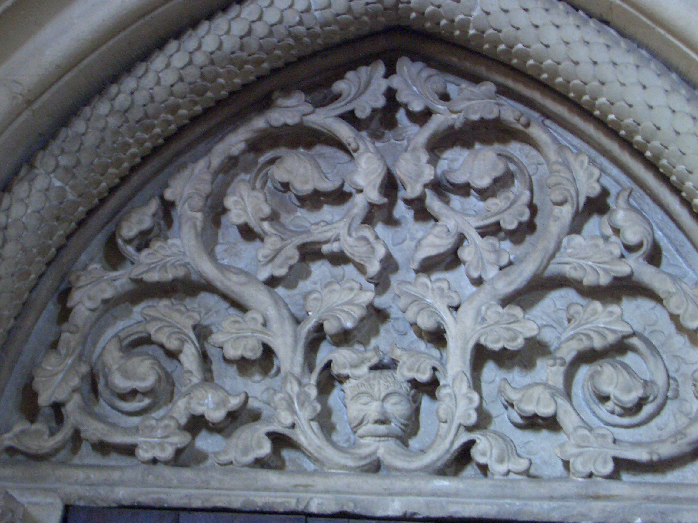 Noch darüber, ganz oben: Ein Katzen- oder Löwenhaupt