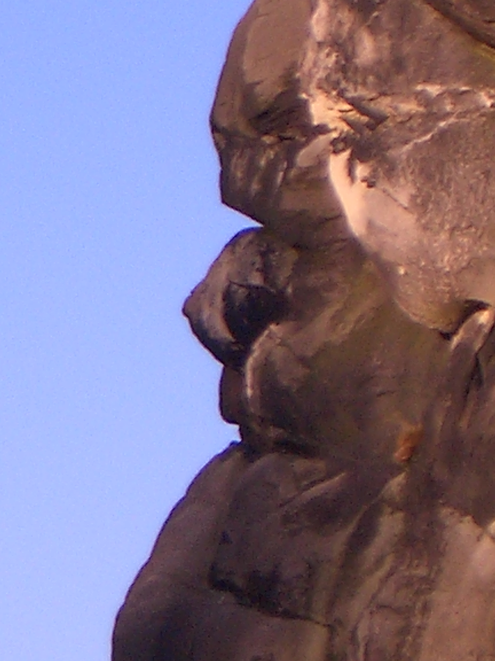 Betrachtet man diese Felskante aber aus einiger Entfernung, so sieht man nur noch ein einziges, markantes Gesichtsprofil