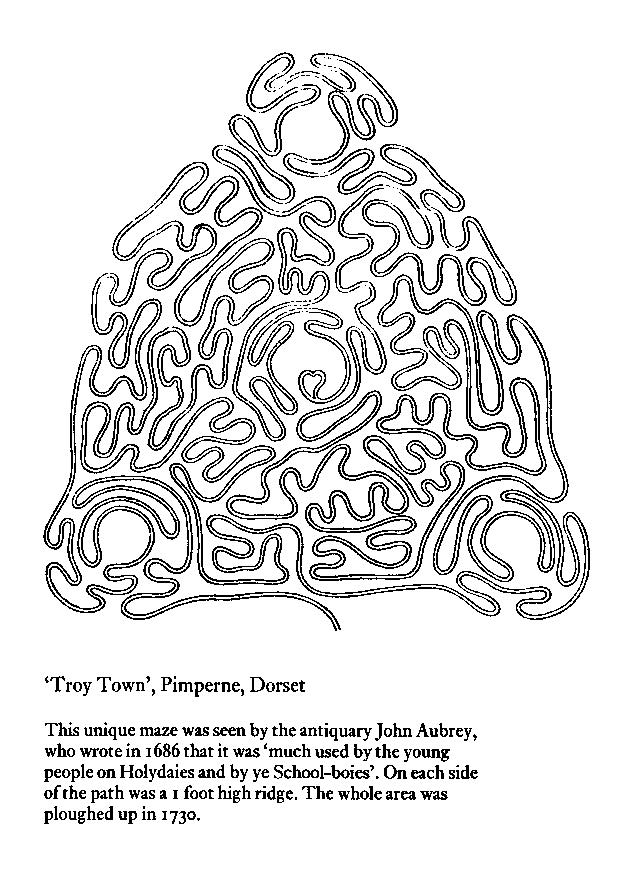 Bild 35 (Prähistorisches Labyrinth aus England, überliefert 1686 - aus: Janet & Colin Bord: Mysterious Britain, Frogmore 1974