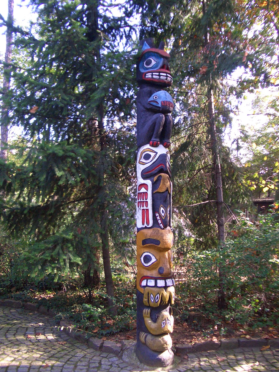 Allerdings gibt es Formen sakraler Kunst, in der eine solche Darstellungsform üblich ist: Beispielsweise die Totempfähle indianischer Stämme Nordamerikas: